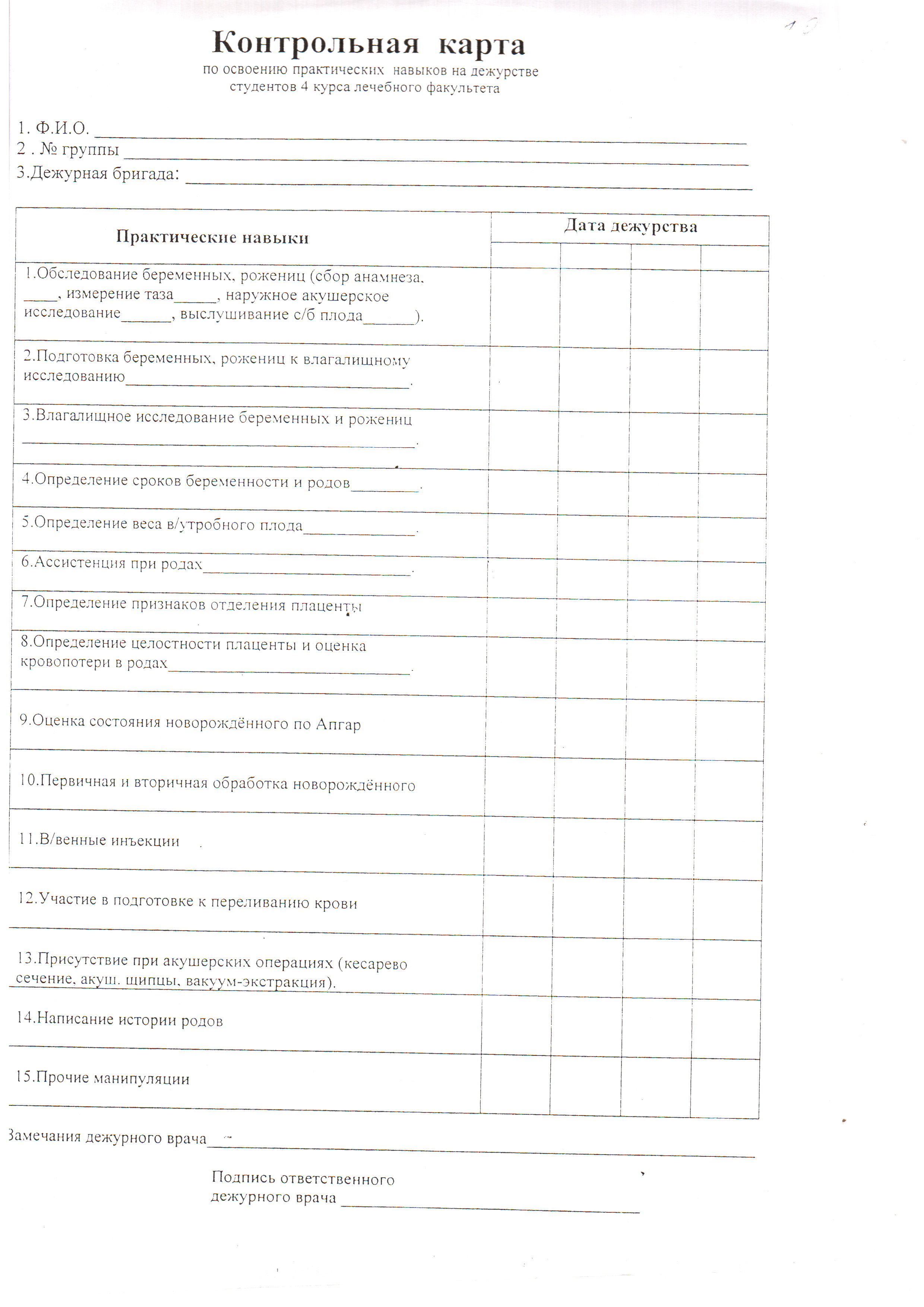 Контрольная карта по освоению практических навыков на дежурстве jpeg